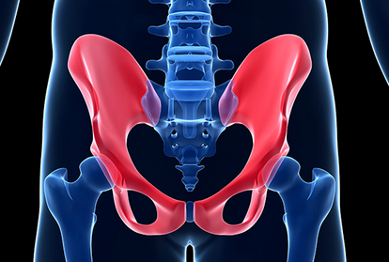 The sacroiliac joints are the joints that form where the large bone called the sacrum in the lower back meets the ilium bones that form part of the pelvis or hips.